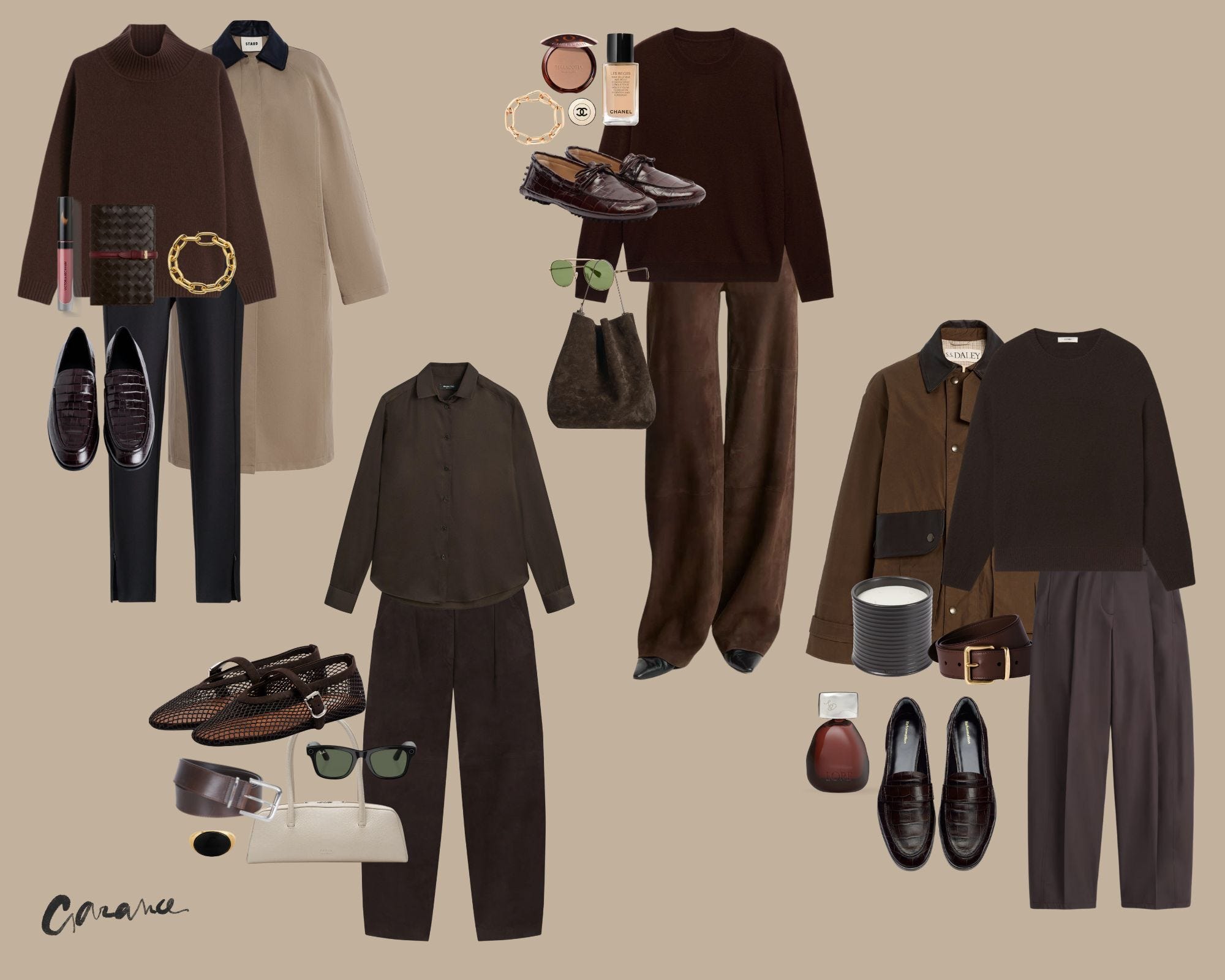 I adore browns! It suits me best out of all colours, and like you, Garance, I love wearing it because it's not bright and it doesn't make me stand out. In my 20s, when I was working as a secretary and had no money, I purchased a brown linen shift dress from a high street store. It was one of those pieces that fitted like a glove and I wore confidently (so many things I didn't). I remember standing in the office kitchen making my morning tea when one of the female partners complimented me on my dress. This woman reminded me of a chic French woman and always carried a Prada bag. It was the ultimate compliment! Since then, I've always had brown in my wardrobe and love it when it comes back in fashion.